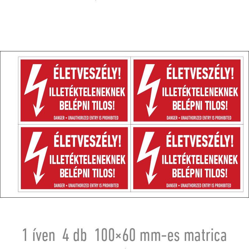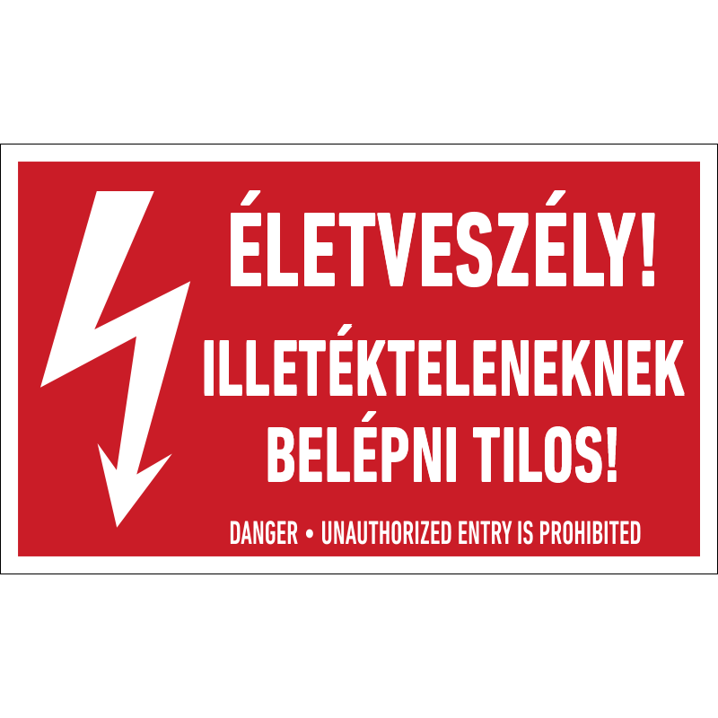 Az “Életveszélyes! Idegeneknek belépni tilos!” az elektromos berendezést védő objektumba való belépés tilalmára figyelmeztet.