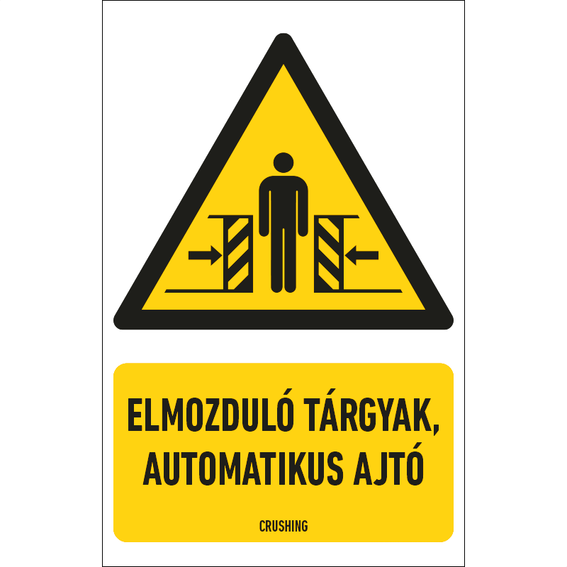 Az “Elmozduló tárgyak, automatikus ajtó” az automatikus működésű eszközökre figyelmeztető piktogram+felirat.