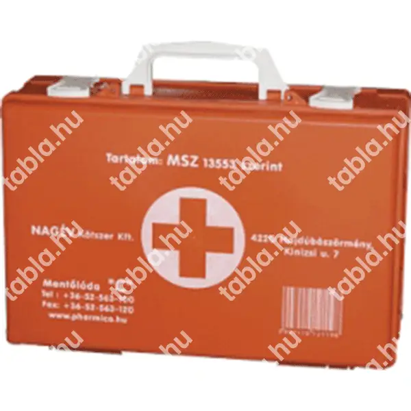 Elsősegély felszerelés “C” gépjármű kategóriához. 6/1990. KÖHÉM szabvány által meghatározott tartalmú elsősegély doboz.