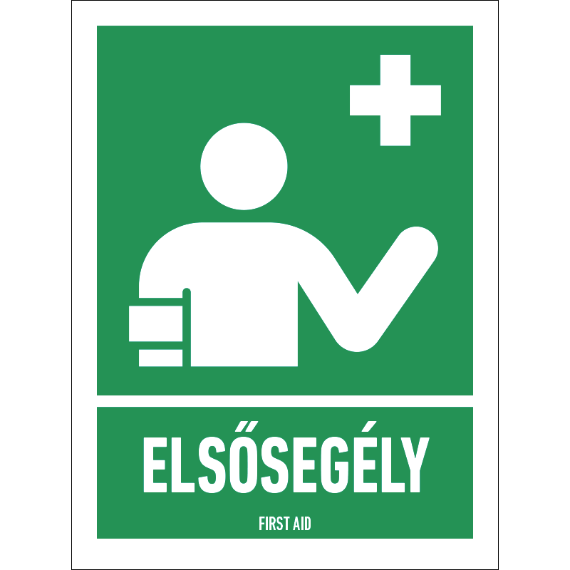 Elsősegély tábla (ISO 7010-E064 piktogram + felirat) 150x200 mm MET106002PVC01500200 PVC 1 mm 150 mm 200 mm 1 mm db 625 Ft 794 Ft