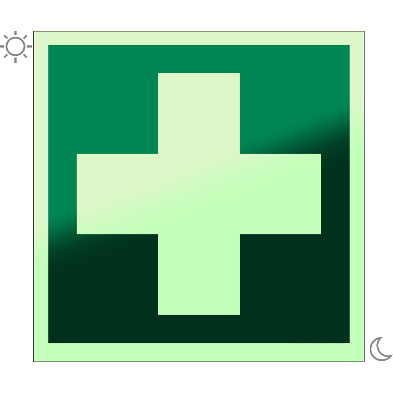 Elsősegélyhely utánvilágító tábla (ISO 7010-E003 piktogram) 150x150 mm MET010001UTG01500150 PET-G 0,7 mm+utánvilágító vinil 150 mm 150 mm 1.5 mm db 1250 Ft 1588 Ft