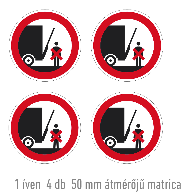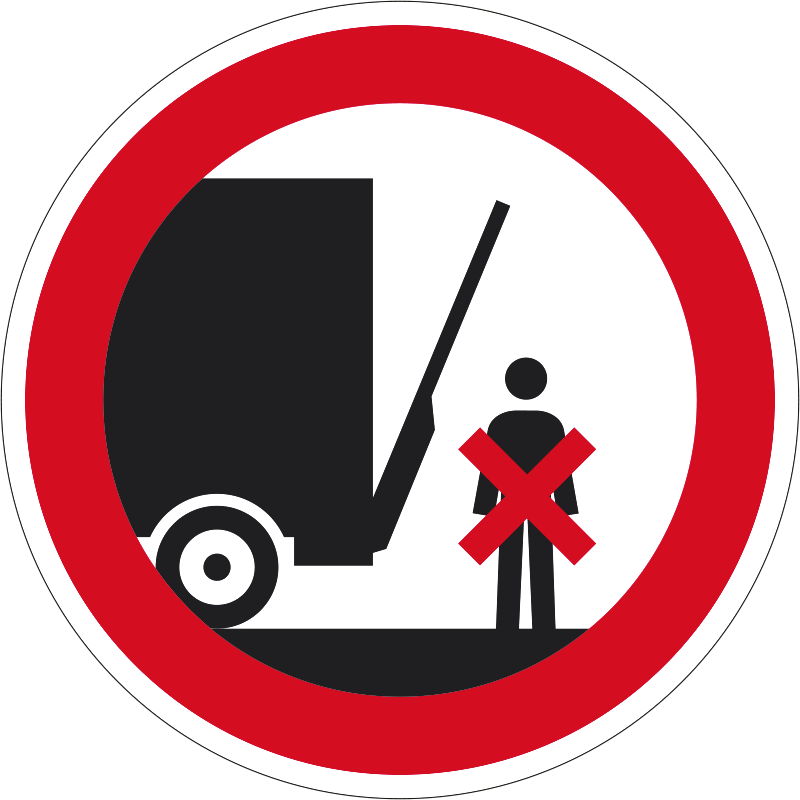 Az “Emelőfal alatt tartózkodni tilos!” a teherautó emelőfala alatti tartózkodást tiltó piktogram.