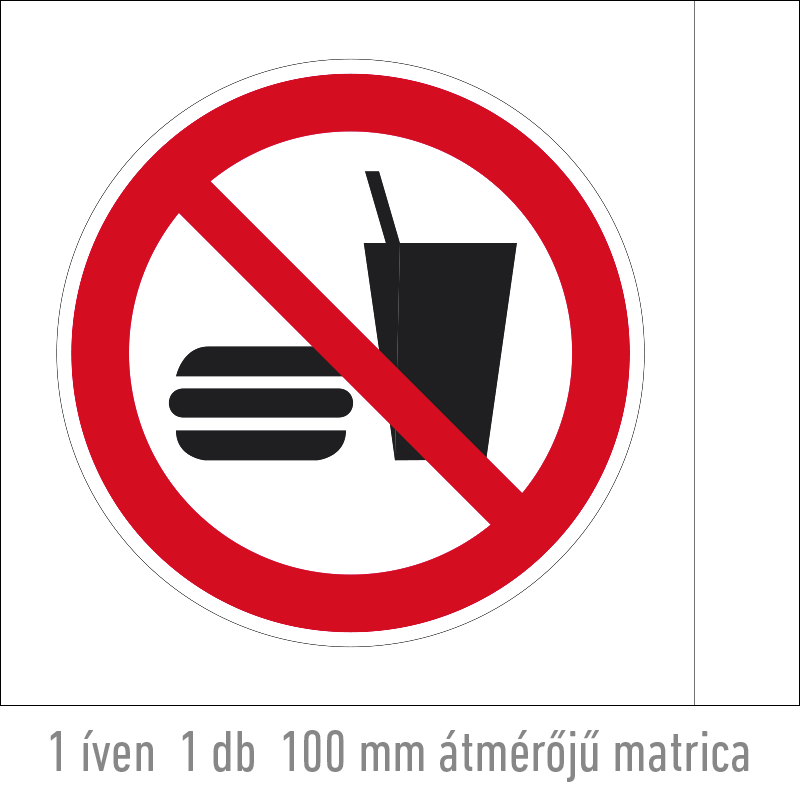 | Étkezni, inni tilos! matrica (ISO 7010-P022 piktogram) 100 mm TIT030000ONV01000000 | vinil öntapadó | 100 mm | 100 mm | 0.2 mm | db | 225 Ft | 286 Ft |
