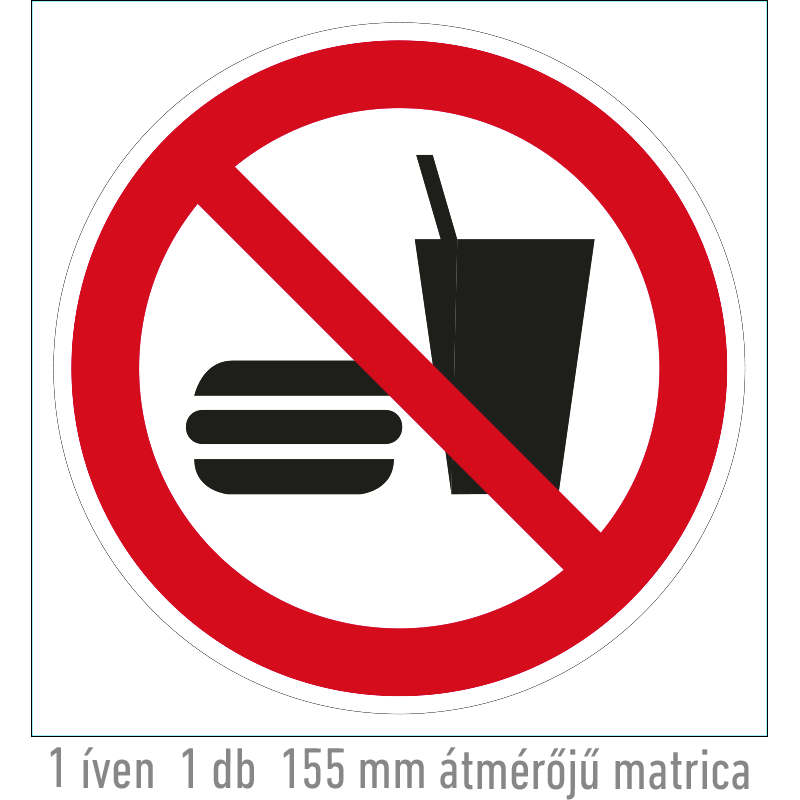 | Étkezni, inni tilos! matrica (ISO 7010-P022 piktogram) 155 mm TIT030000ONV01550000 | vinil öntapadó | 155 mm | 155 mm | 0.2 mm | db | 385 Ft | 489 Ft |