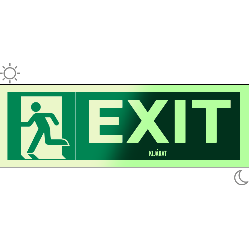 Exit utánvilágító matrica (ISO 7010-E001 piktogram + felirat) 300x100 mm MET024004UTV03000100 utánvilágító öntapadó 300 mm 100 mm 0.5 mm db 1450 Ft 1842 Ft