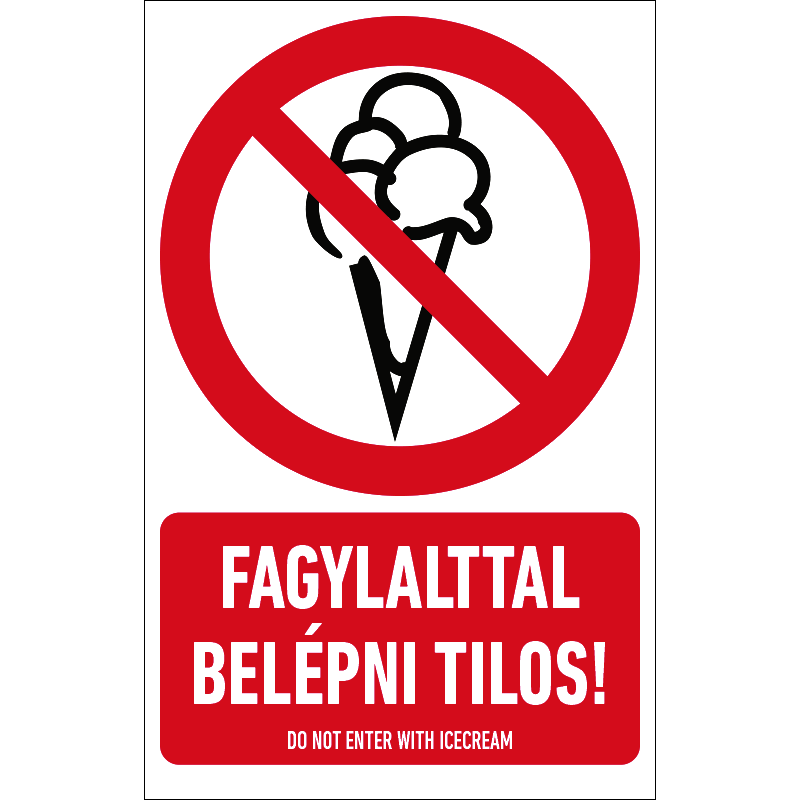 A “Fagylalttal belépni tilos!” a fagylalt bevitelét tiltó piktogram+felirat.
