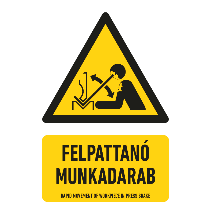 | Felpattanó munkadarab tábla (ISO 7010-W032 piktogram + felirat) 160x250 mm VET101001HOR01600250 | horganyzott lemez | 160 mm | 250 mm | 0.8 mm | db | 2300 Ft | 2921 Ft |
