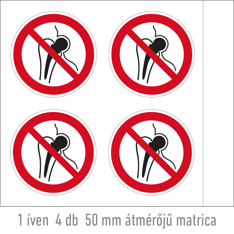 | Fém implantátumot használóknak belépni tilos! matrica (ISO 7010-P014 piktogram) 50 mm TIT036000ONV00500000 | vinil öntapadó | 50 mm | 50 mm | 0.2 mm | ív | 330 Ft | 419 Ft |