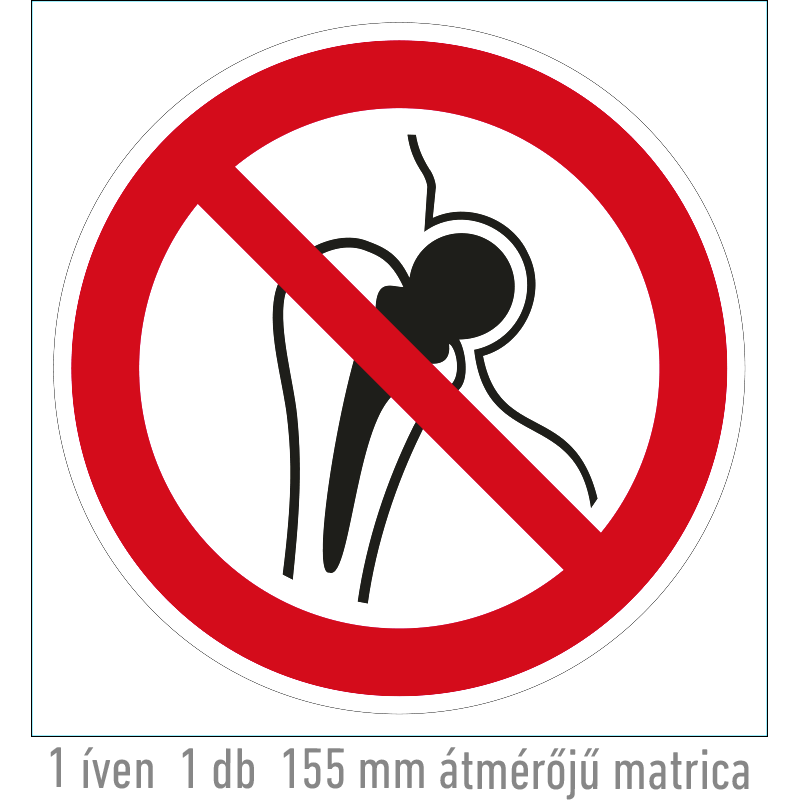 | Fém implantátumot használóknak belépni tilos! matrica (ISO 7010-P014 piktogram) 155 mm TIT036000ONV01550000 | vinil öntapadó | 155 mm | 155 mm | 0.2 mm | db | 385 Ft | 489 Ft |