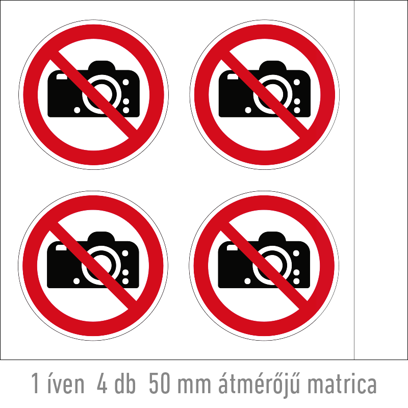 | Fényképezni tilos! matrica (ISO 7010-P029 piktogram) 50 mm TIT041000ONV00500000 | vinil öntapadó | 50 mm | 50 mm | 0.2 mm | ív | 330 Ft | 419 Ft |
