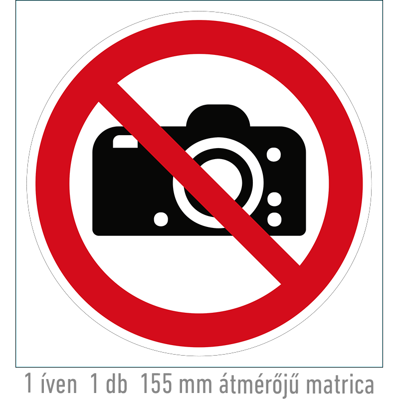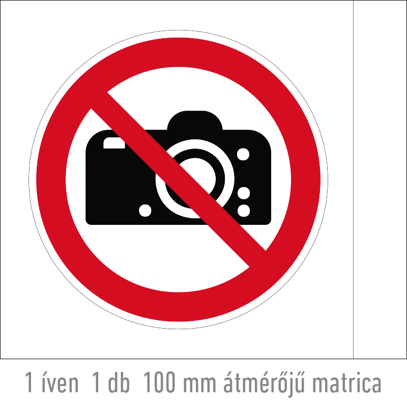 | Fényképezni tilos! matrica (ISO 7010-P029 piktogram) 100 mm TIT041000ONV01000000 | vinil öntapadó | 100 mm | 100 mm | 0.2 mm | db | 225 Ft | 286 Ft |