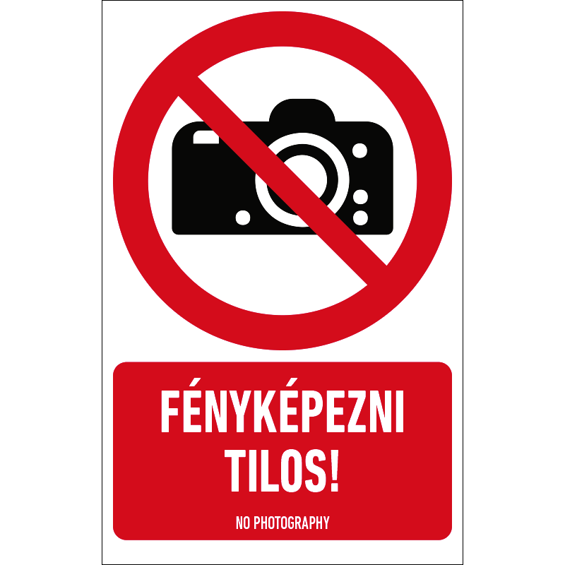 A “Fényképezni tilos!” a fotó készítését tiltó piktogram+felirat.