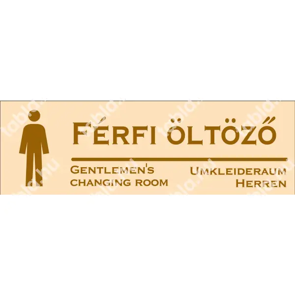 | Férfi öltöző tábla (bézs/barna, három nyelvű) 250x80 mm UZT018001PVC02500080 | PVC 1 mm | 250 mm | 80 mm | 1 mm | db | 545 Ft | 692 Ft |
