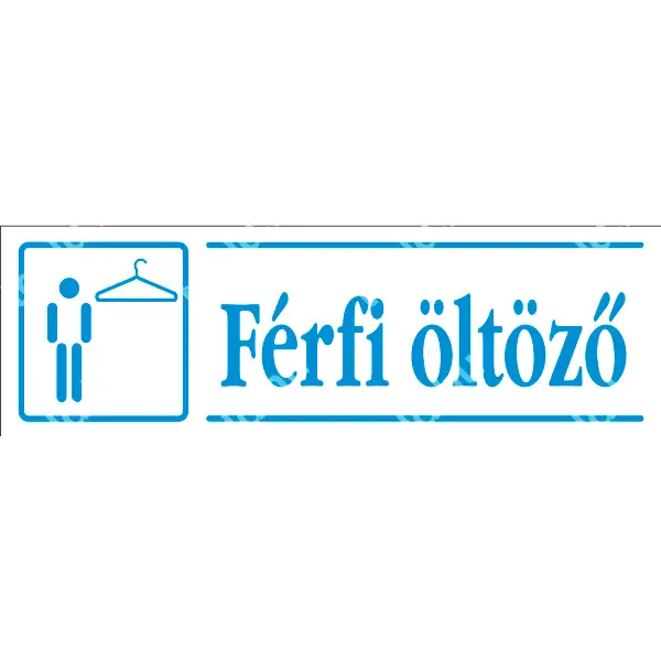 Egyértelmű és jól látható matrica vagy tábla, amely a férfiak számára kijelölt öltözőhelységet jelöli. Könnyen felhelyezhető, tartós anyagból készült, biztosítva a hosszú távú használatot.