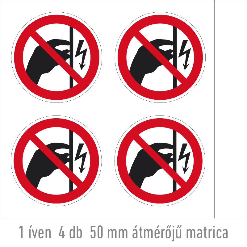 | Feszültség alatt! Megérinteni tilos! matrica (piktogram) 50 mm TIT023000ONV00500000 | vinil öntapadó | 50 mm | 50 mm | 0.2 mm | ív | 330 Ft | 419 Ft |