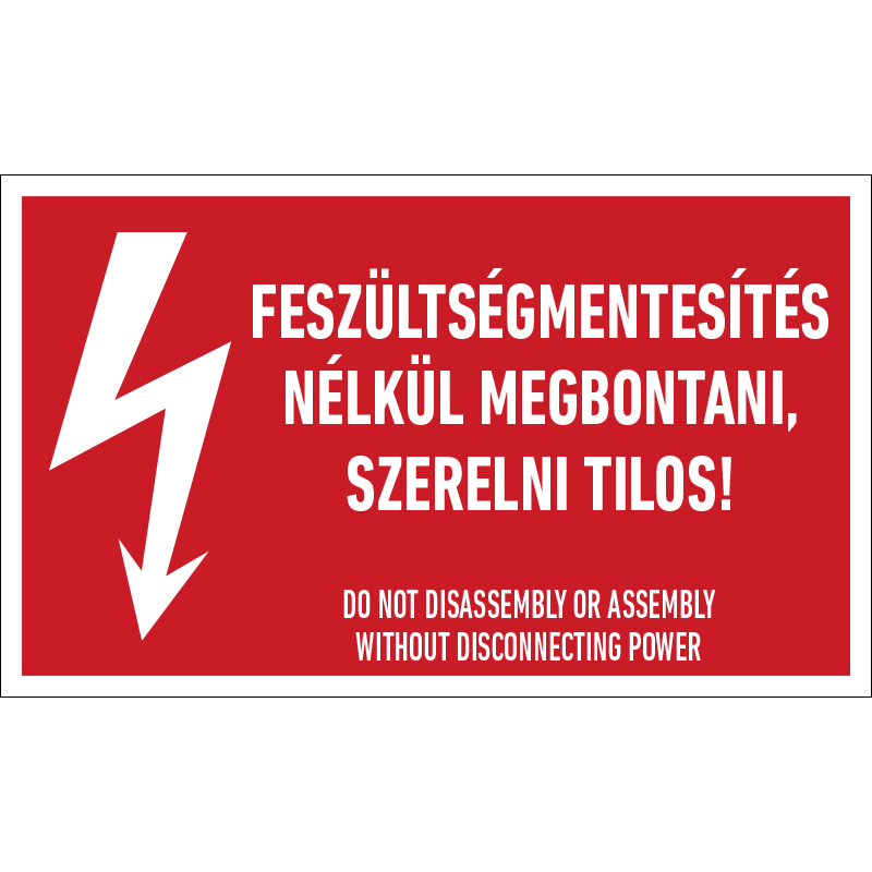 A “Feszültségmentesítés nélkül megbontani, szerelni tilos!” a feszültségmentesítésre hívja fel a figyelmet.
