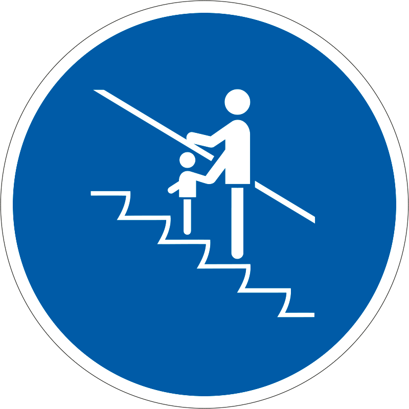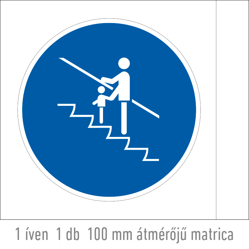 A “Fogja gyermeke kezét!” a biztonság és egészség védelmére vonatkozik: a gyermek felügyeletére figyelmeztető kék alapon fehér piktogram.