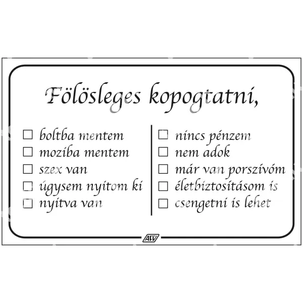 Fölösleges kopogtatni, ... tábla 160x100 mm DEB014001PVC01600100 PVC 1 mm 160 mm 100 mm 1 mm db 625 Ft 794 Ft