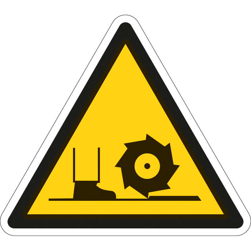 A “Forgó szerszám” a forgó alkatrészek okozta sérülésveszélyre figyelmeztető piktogram.