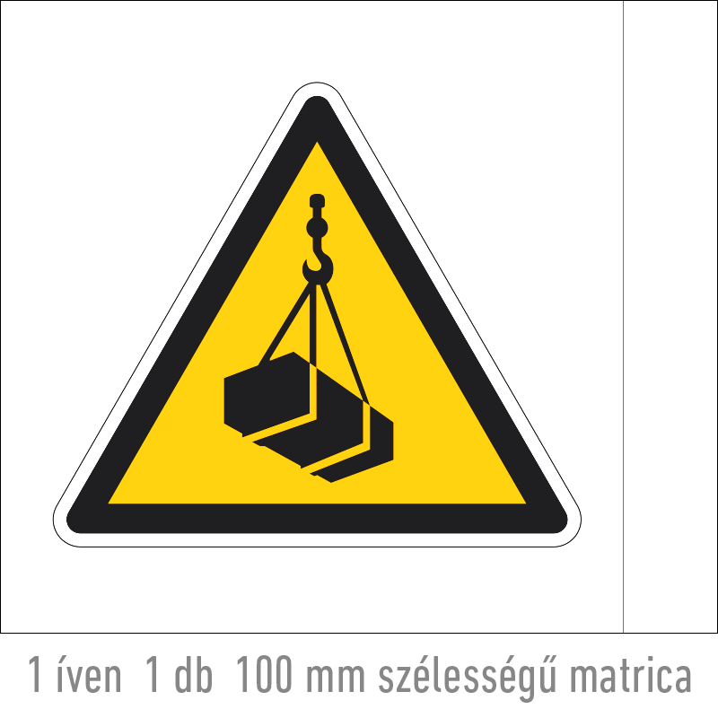 | Függő teher matrica (ISO 7010-W015 piktogram) 100 mm VET025000ONV01000000 | vinil öntapadó | 100 mm | 86 mm | 0.2 mm | db | 225 Ft | 286 Ft |