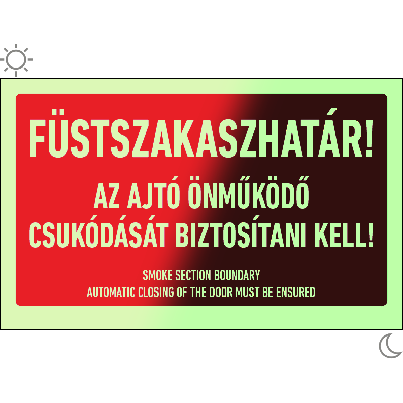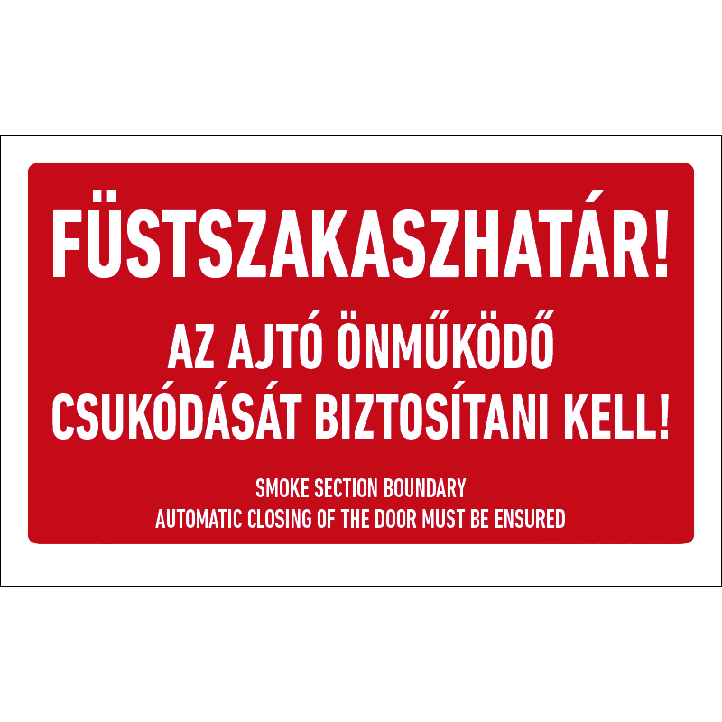 A “Füstszakaszhatár! Az ajtó önműködő csukódását biztosítani kell!” a füstszakaszhatárt automatikusan lezáró ajtóra figyelmeztető felirat.