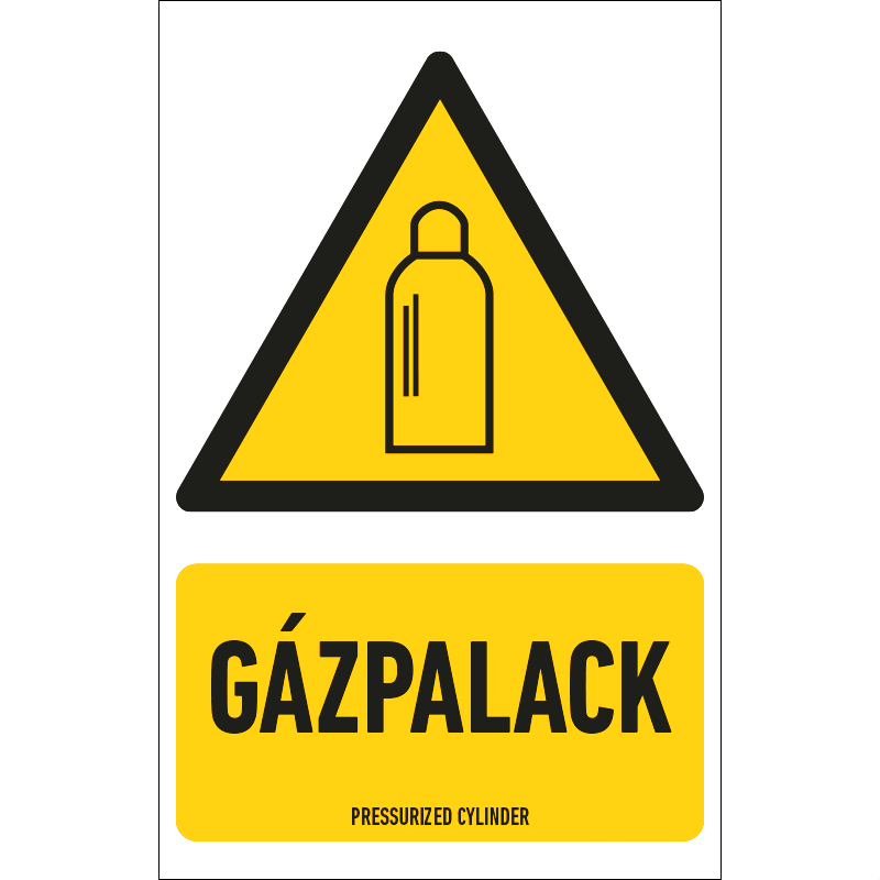 A “Gázpalack” a robbanásveszélyes gázpalackra figyelmeztető piktogram+felirat.