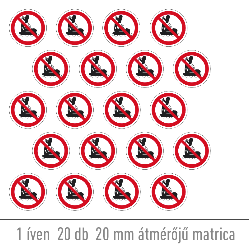 | Görkorcsolyázni tilos! matrica (piktogram) 20 mm TIT040000ONV00200000 | vinil öntapadó | 20 mm | 20 mm | 0.2 mm | ív | 330 Ft | 419 Ft |