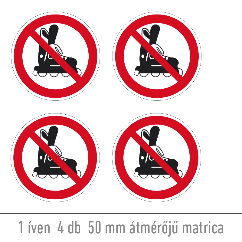 | Görkorcsolyázni tilos! matrica (piktogram) 50 mm TIT040000ONV00500000 | vinil öntapadó | 50 mm | 50 mm | 0.2 mm | ív | 330 Ft | 419 Ft |
