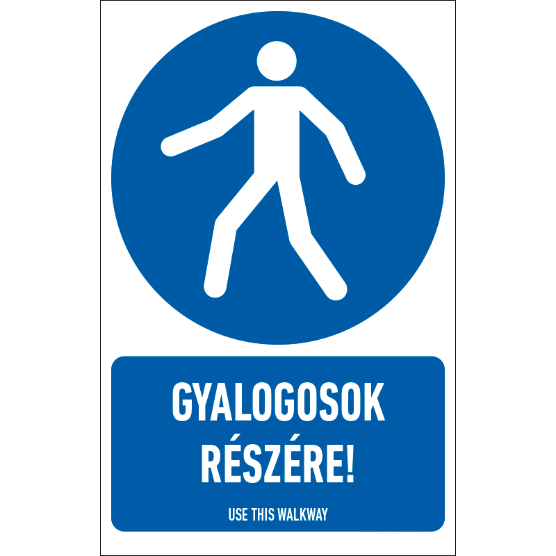 Gyalogosok részére! matrica / tábla (ISO 7010-M024 piktogram + felirat)