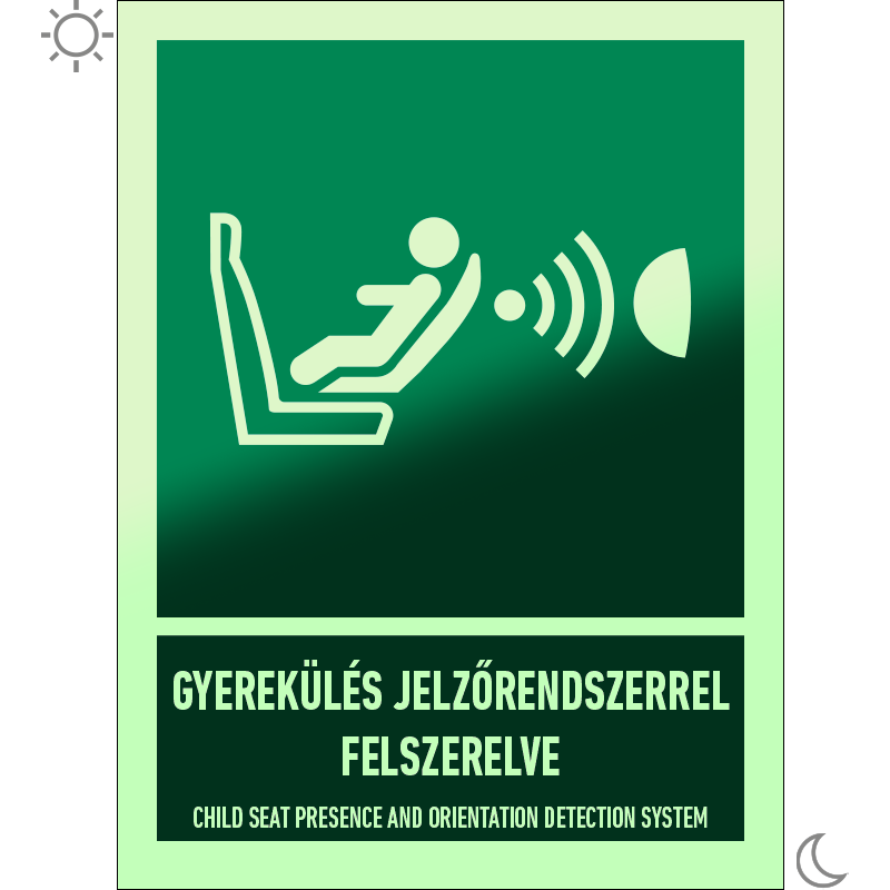 | Gyerekülés jelzőrendszerrel (CPOD) felszerelve utánvilágító matrica (ISO 7010-E014 piktogram + felirat) 150x200 mm MET077002UTV01500200 | utánvilágító öntapadó | 150 mm | 200 mm | 0.5 mm | db | 1450 Ft | 1842 Ft |