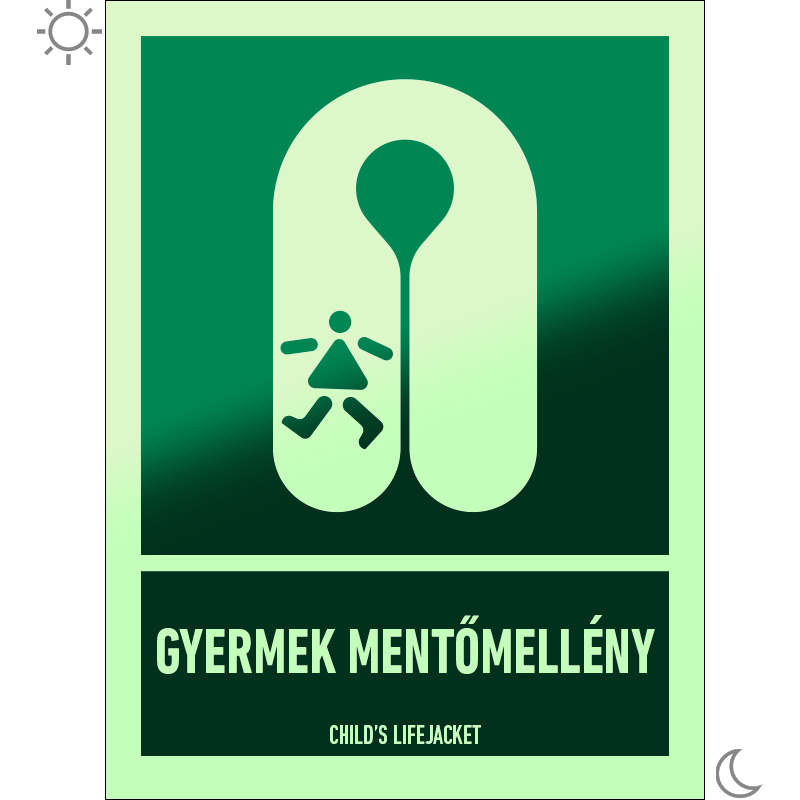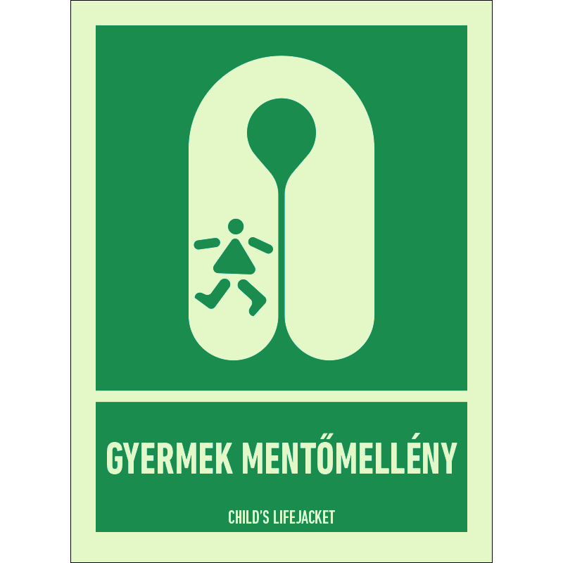 A “Gyermek mentőmellény” a hajón található gyermek mentőmellény helyét jelző zöld alapon fehér piktogram.