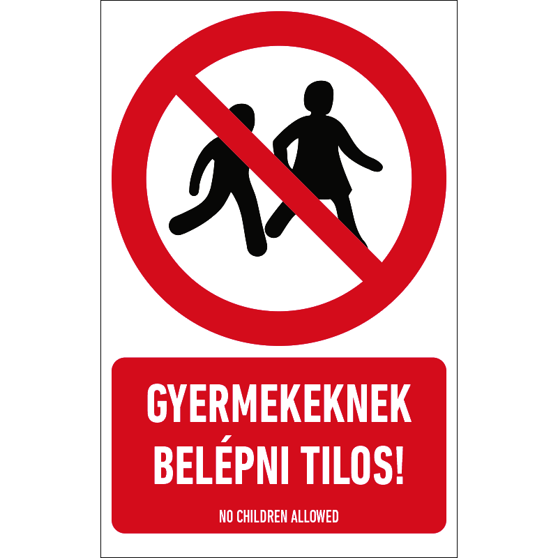 A “Gyermekeknek belépni tilos!” a gyermekek belépését tiltó piktogram+felirat.