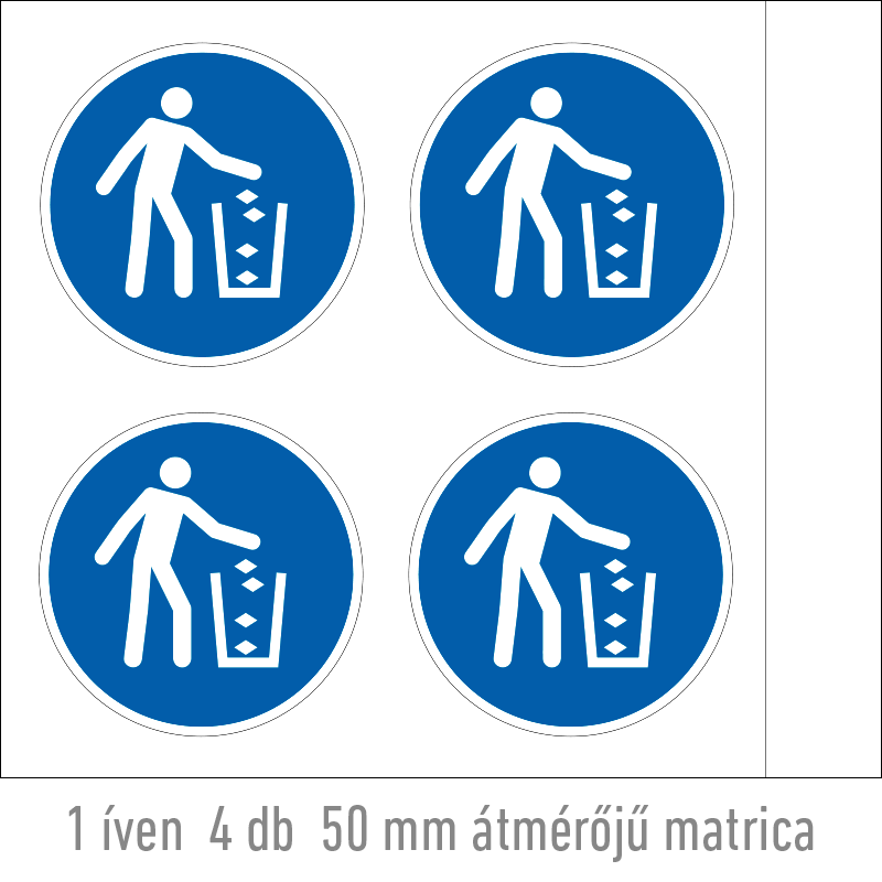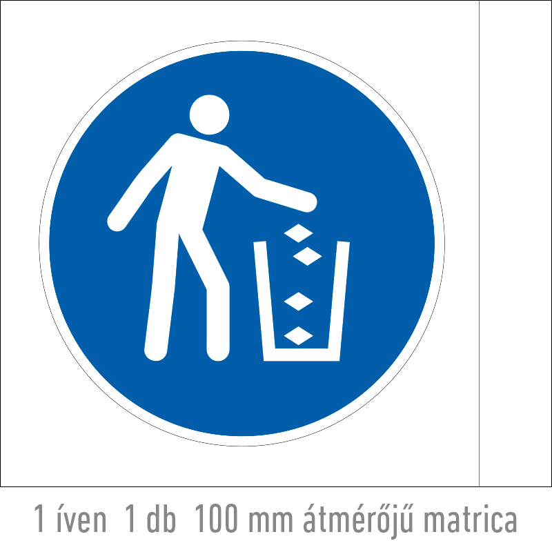 A “Használja a szemetest!” a higiéniára, biztonságra és az egészség védelmére vonatkozik, a szemét megfelelő elhelyezését előíró kék alapon fehér piktogram.