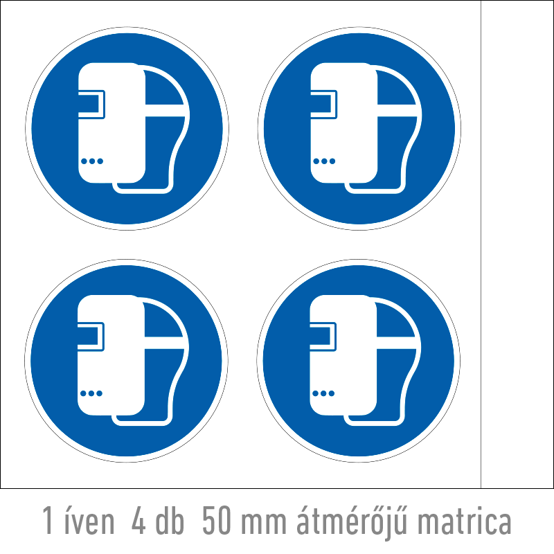 Hegesztőpajzs használata kötelező! matrica (ISO 7010-M019 piktogram) 50 mm BIT084000ONV00500000 vinil öntapadó 50 mm 50 mm 0.2 mm ív 330 Ft 419 Ft