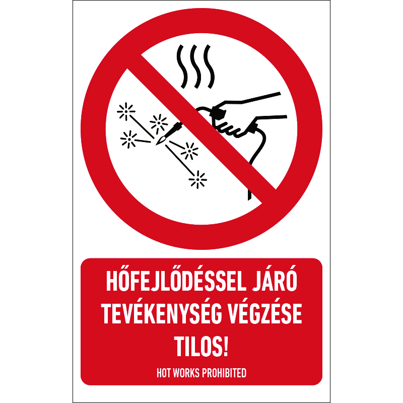A “Hőfejlődéssel járó tevékenység végzése tilos!” a hő keletkezésével járó tevékenység végzését tiltó piktogram+felirat.