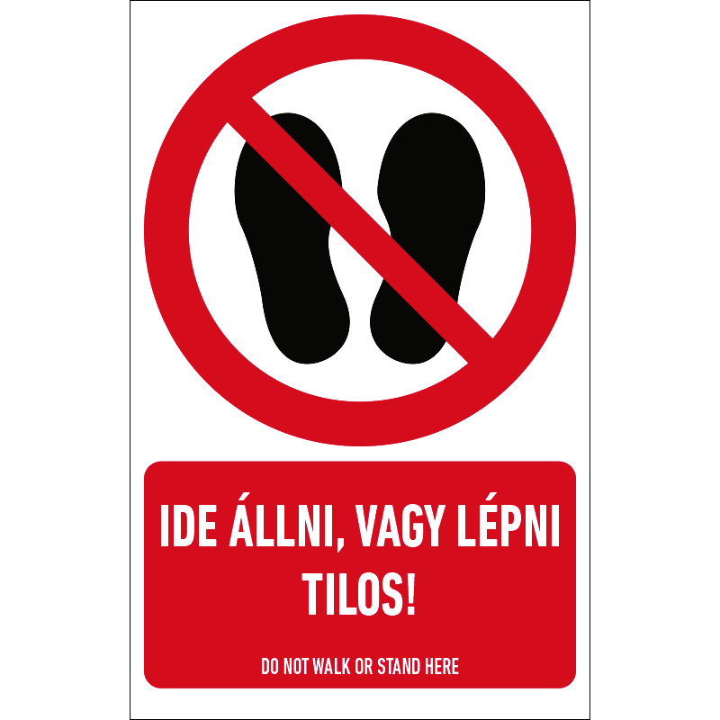 Az “Ide állni, vagy lépni tilos!” a felületre lépést tiltó piktogram+felirat.