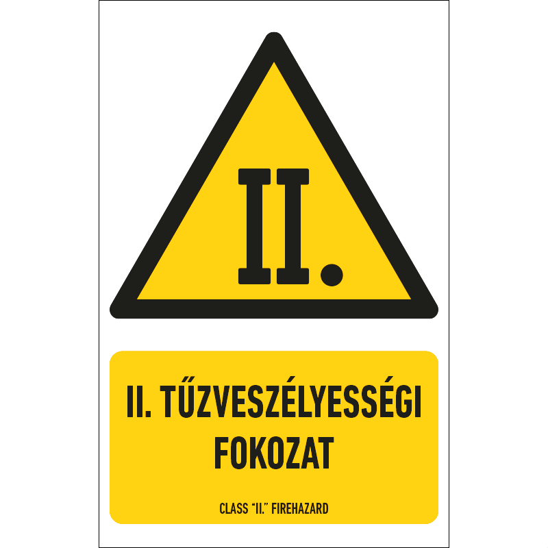 | II. tűzveszélyességi fokozat tábla (piktogram + felirat) 160x250 mm VET004001PVC01600250 | PVC 1 mm | 160 mm | 250 mm | 1 mm | db | 825 Ft | 1048 Ft |