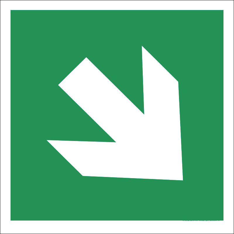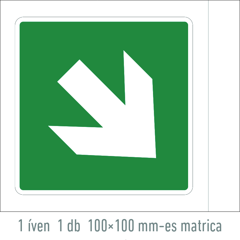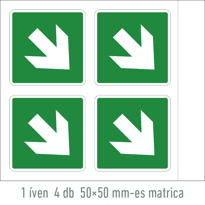 Az “Iránynyíl, fel / le” a menekülési út irányát jelző zöld alapon fehér piktogram.