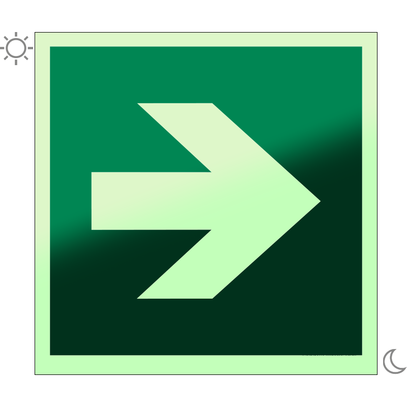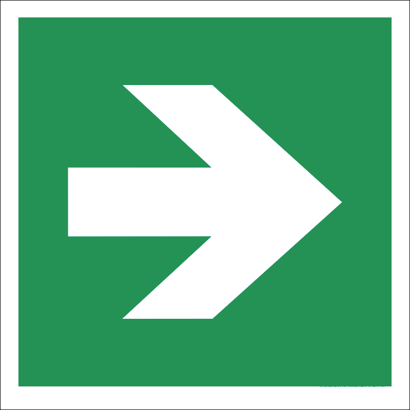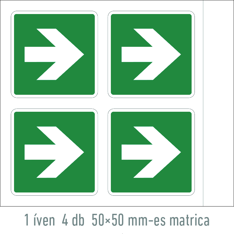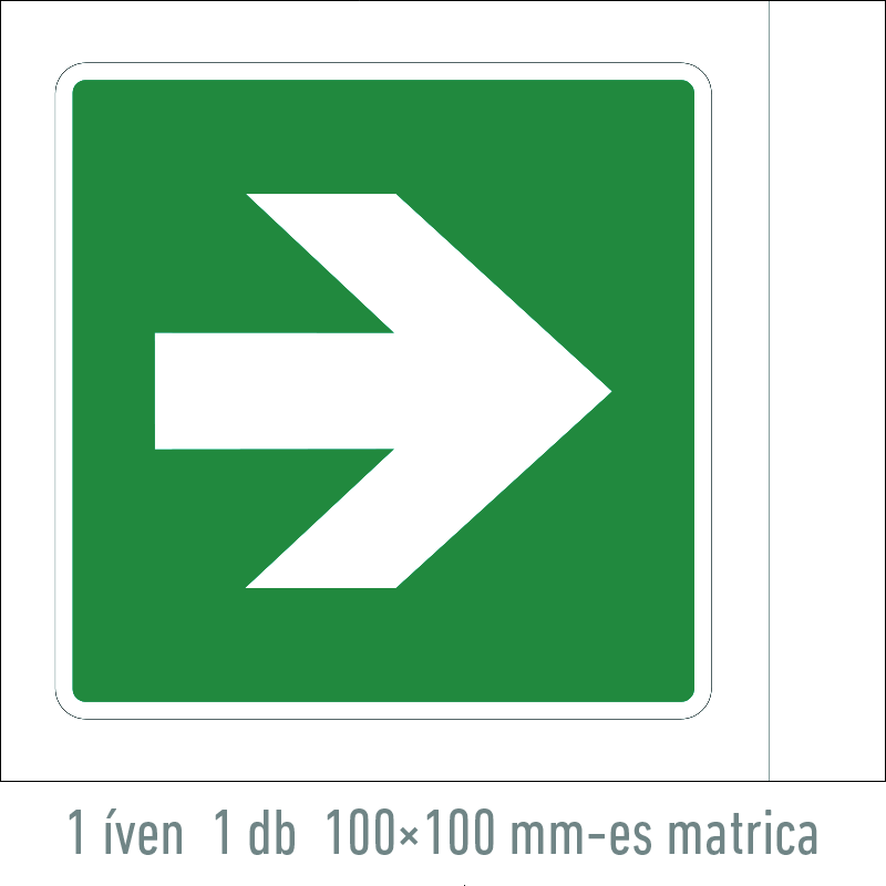Az “Iránynyíl, jobbra / balra” a menekülési út irányát jelző zöld alapon fehér piktogram.