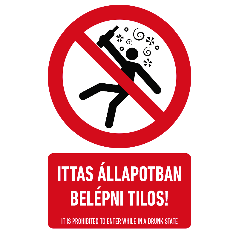 Az “Ittas állapotban belépni tilos!” az ittas személyek belépését tiltó piktogram+felirat.