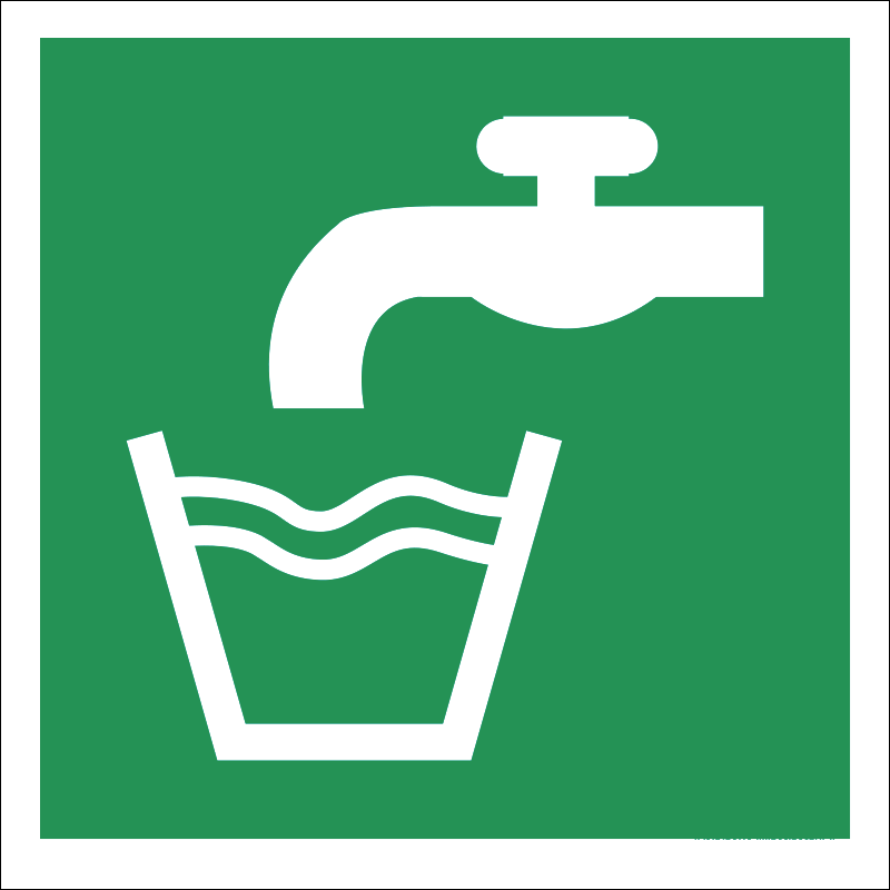 A “Ivóvíz” az ivásra alkalmas víz helyét jelző zöld alapon fehér piktogram.