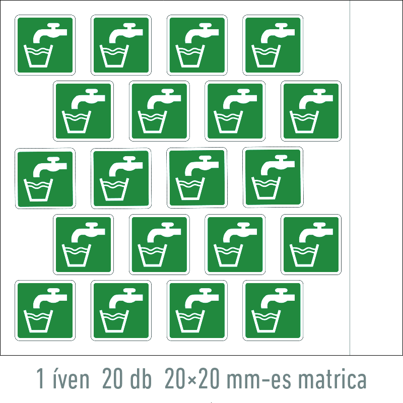 | Ivóvíz matrica (ISO 7010-E015 piktogram) 20x20 mm MET063001ONV00200020 | vinil öntapadó | 20 mm | 20 mm | 0.2 mm | ív | 330 Ft | 419 Ft |