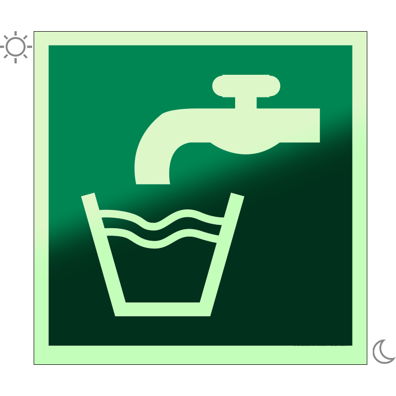 | Ivóvíz utánvilágító tábla (ISO 7010-E015 piktogram) 150x150 mm MET063001UTG01500150 | PET-G 0,7 mm+utánvilágító vinil | 150 mm | 150 mm | 1.5 mm | db | 1250 Ft | 1588 Ft |