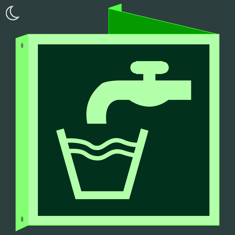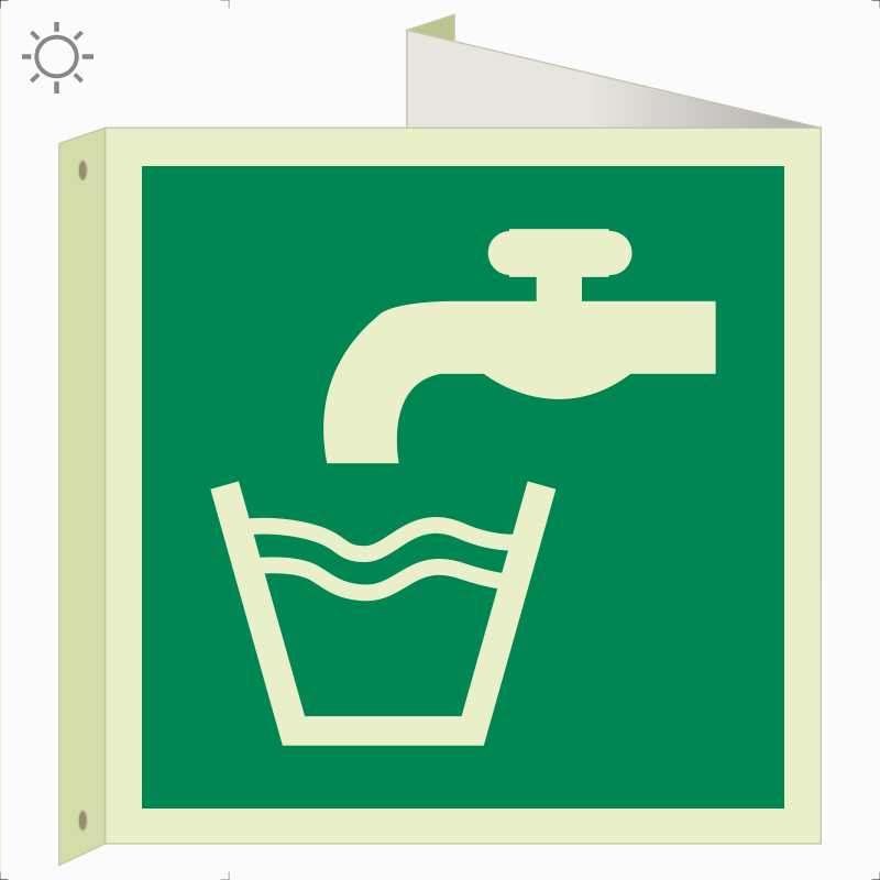 | Ivóvíz utánvilágító tábla, faltól elálló, sátor alakú, kétoldalas (ISO 7010-E015 piktogram) 200x200 mm MET063003UTG02000200 | PET-G 0,7 mm+utánvilágító vinil | 330 mm | 200 mm | 130 mm | db | 6550 Ft | 8319 Ft |