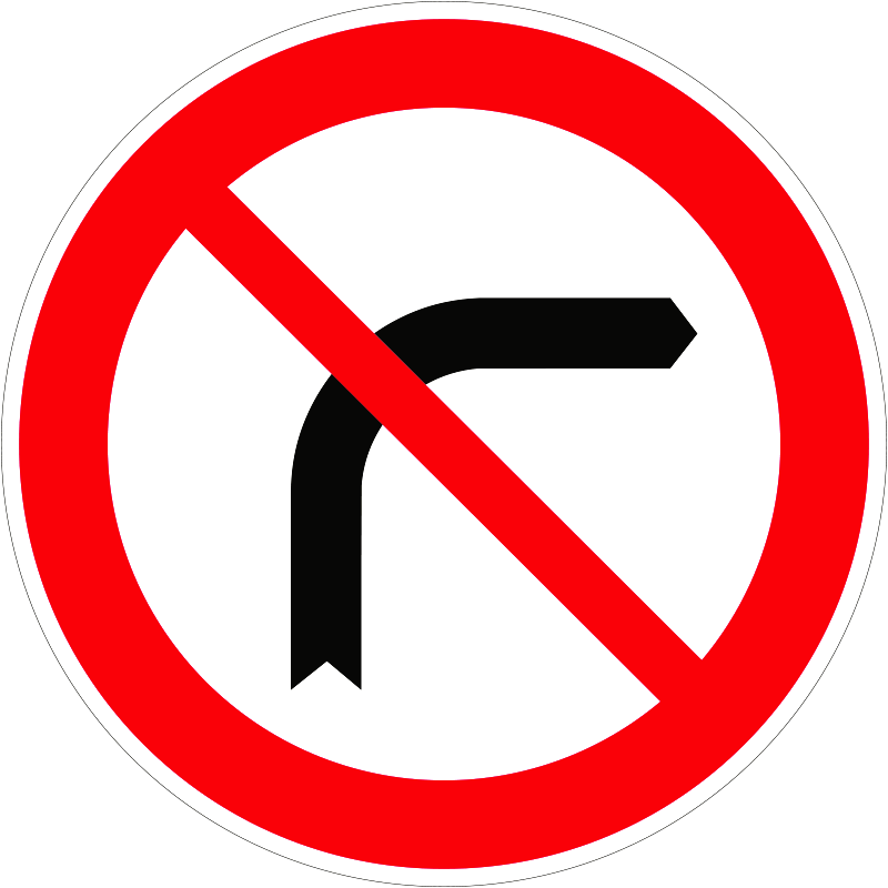 | Jobbra bekanyarodni tilos! KRESZ közlekedési tábla 600 mm (2. fóliaosztály) gyorsforgalmi út, főút, főútvonal KZC029001HHI00000600 | horganyzott lemez + fényvisszavető fólia HI | 600 mm | 600 mm | 1.99 mm | db | 13081 Ft | 16613 Ft |
