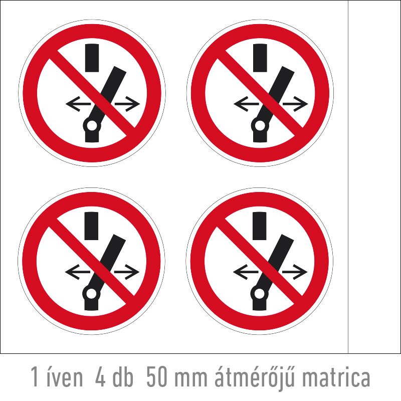 | Kapcsolni tilos! matrica (ISO 7010-P031 piktogram) 50 mm TIT026000ONV00500000 | vinil öntapadó | 50 mm | 50 mm | 0.2 mm | ív | 330 Ft | 419 Ft |