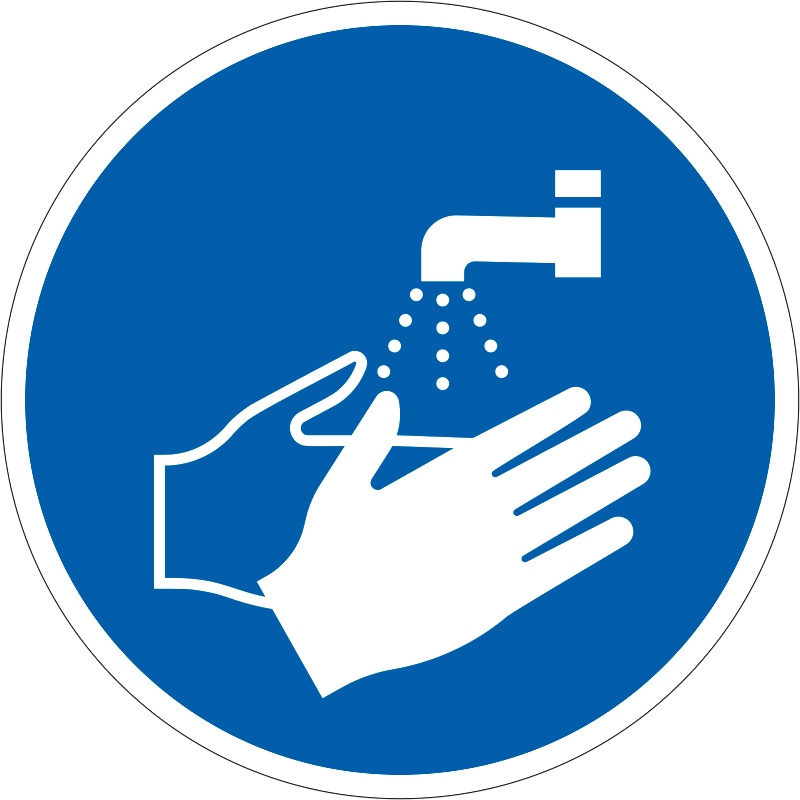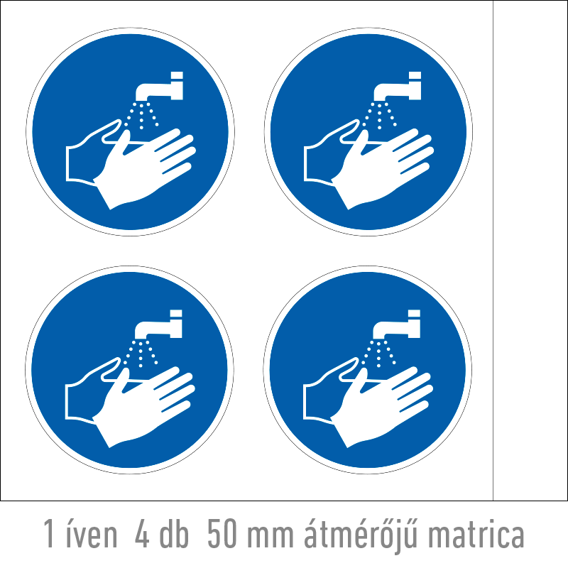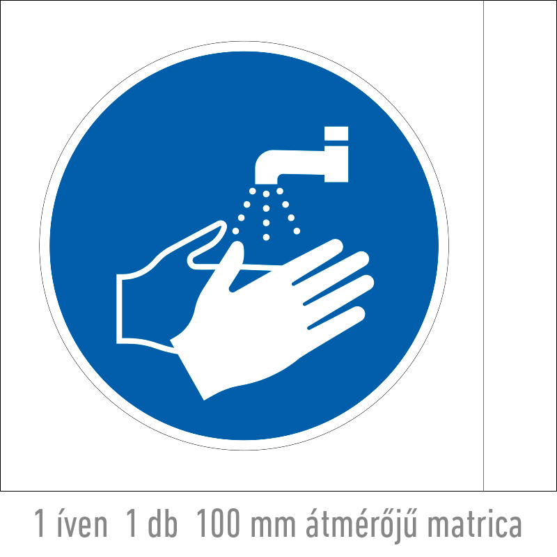 A “Kézmosás kötelező!” az egészség védelmére és a személyi higiénia betartására vonatkozik: a kézmosást előíró kék alapon fehér piktogram.