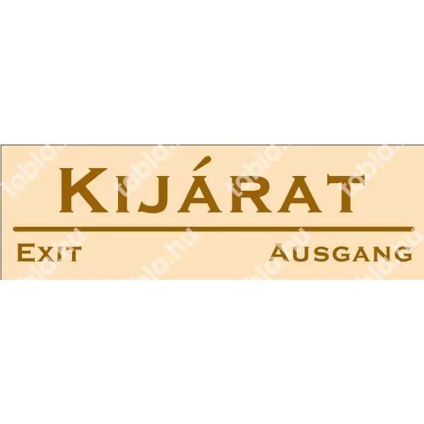 | Kijárat tábla (bézs/barna, három nyelvű) 250x80 mm UZT005001PVC02500080 | PVC 1 mm | 250 mm | 80 mm | 1 mm | db | 545 Ft | 692 Ft |