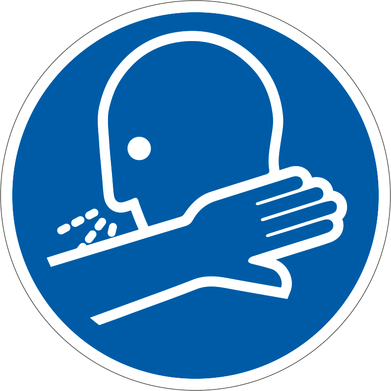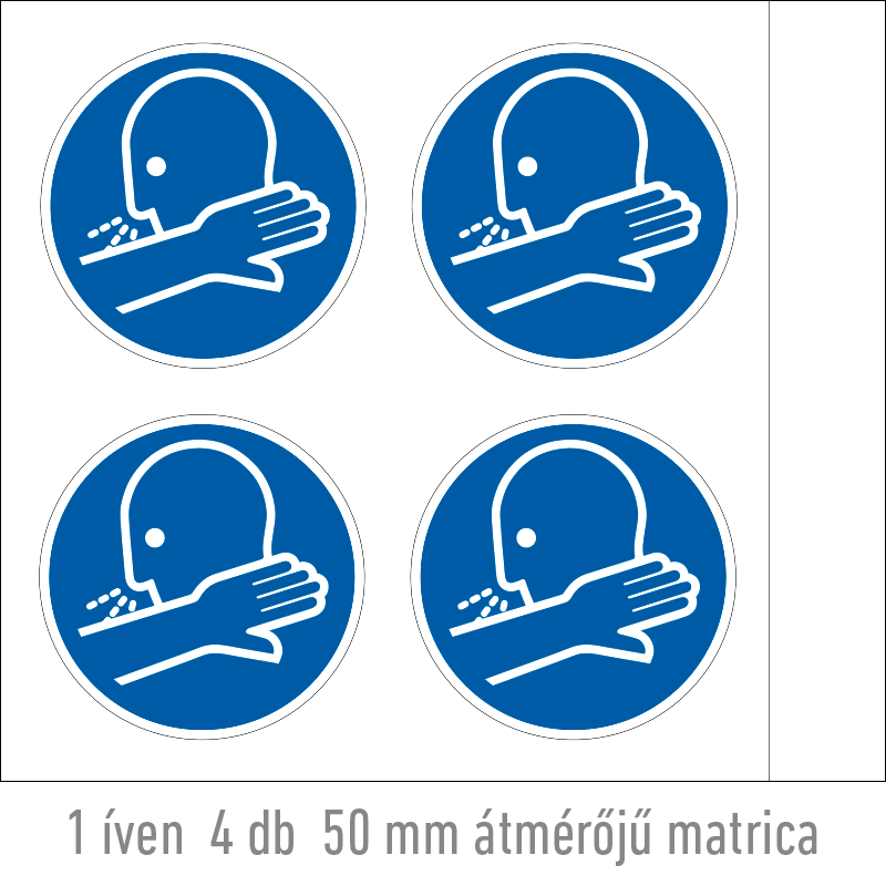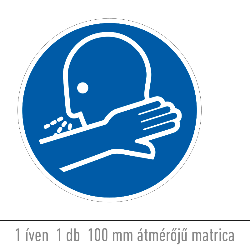 A “Köhögjön, tüsszentsen könyökhajlatába!” a biztonság és egészség védelmére vonatkozik: a fertőzések terjedésére figyelmeztető kék alapon fehér piktogram.