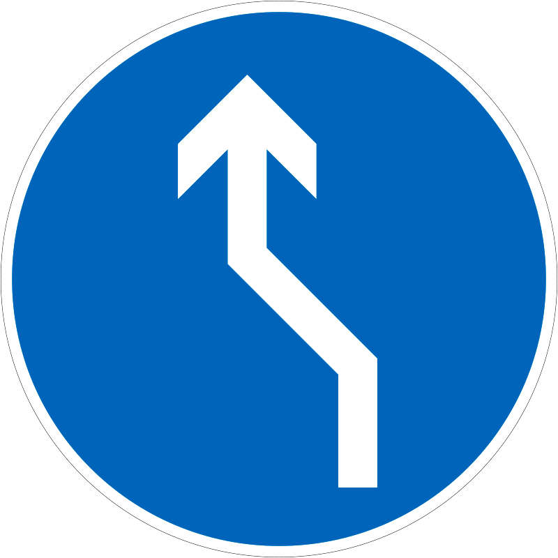 Kötelező haladási irány (S-alakban megtört) KRESZ közlekedési tábla